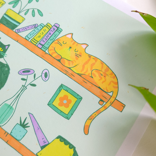 CATS ON SHELVES PRINT
