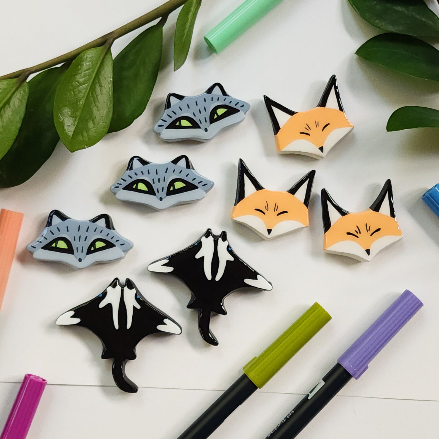 These magnets are handmade from polymer clay, hand painted with acrylic paint, and coated in resin for a protective and shiny finish.